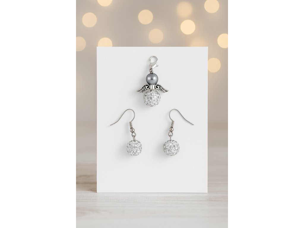 Velikost andělíčka je cca 2 cm, spodní část je z šatonové kuličky o velikosti 10 mm. Uprostřed tělíčka jsou andělská křídla a na vrchu antracitová hlavička s ozdobnou čepičkou.